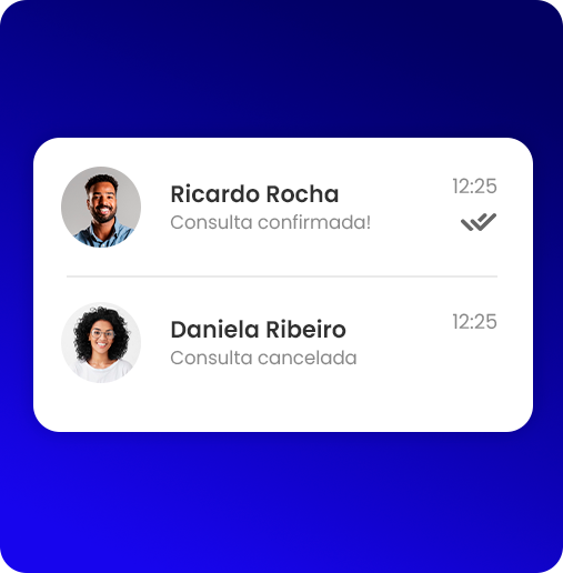 Automatize os lembretes por WhatsApp ou SMS e reduza faltas com confirmações práticas e imediatas.